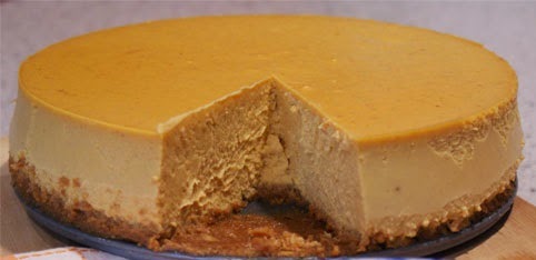 Disclaimer: The picture up top is NOT an actual picture of what my wife made…but it IS a pumpkin cheesecake. Yours will look similar.